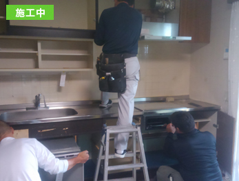 二部屋を一部屋にして、アイランドキッチンを、施工しました。